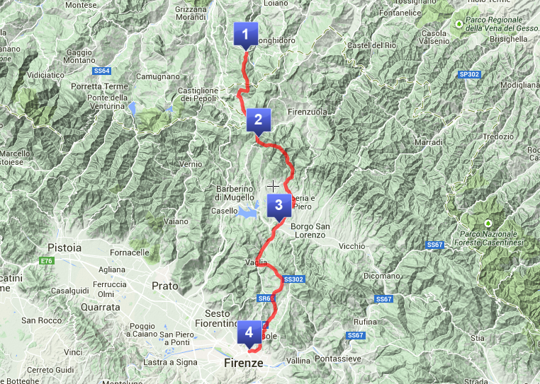 Totale 69 chilometri (senza deviazioni, fino a Firenze).
