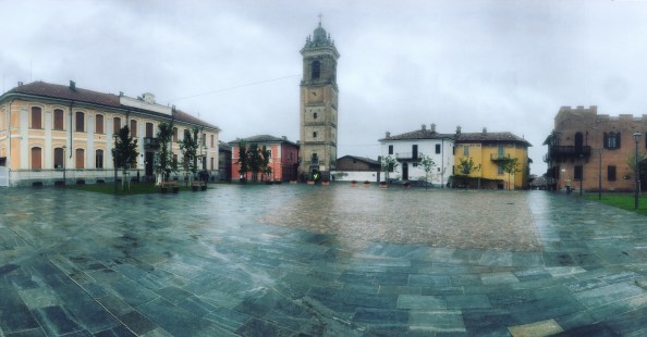La Morra, piazza e vista belvedere.
